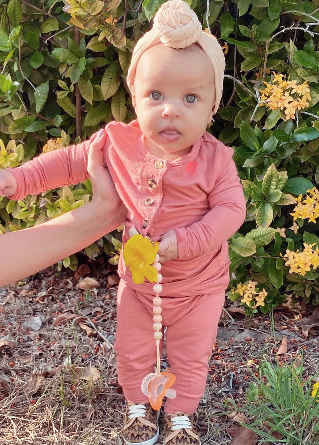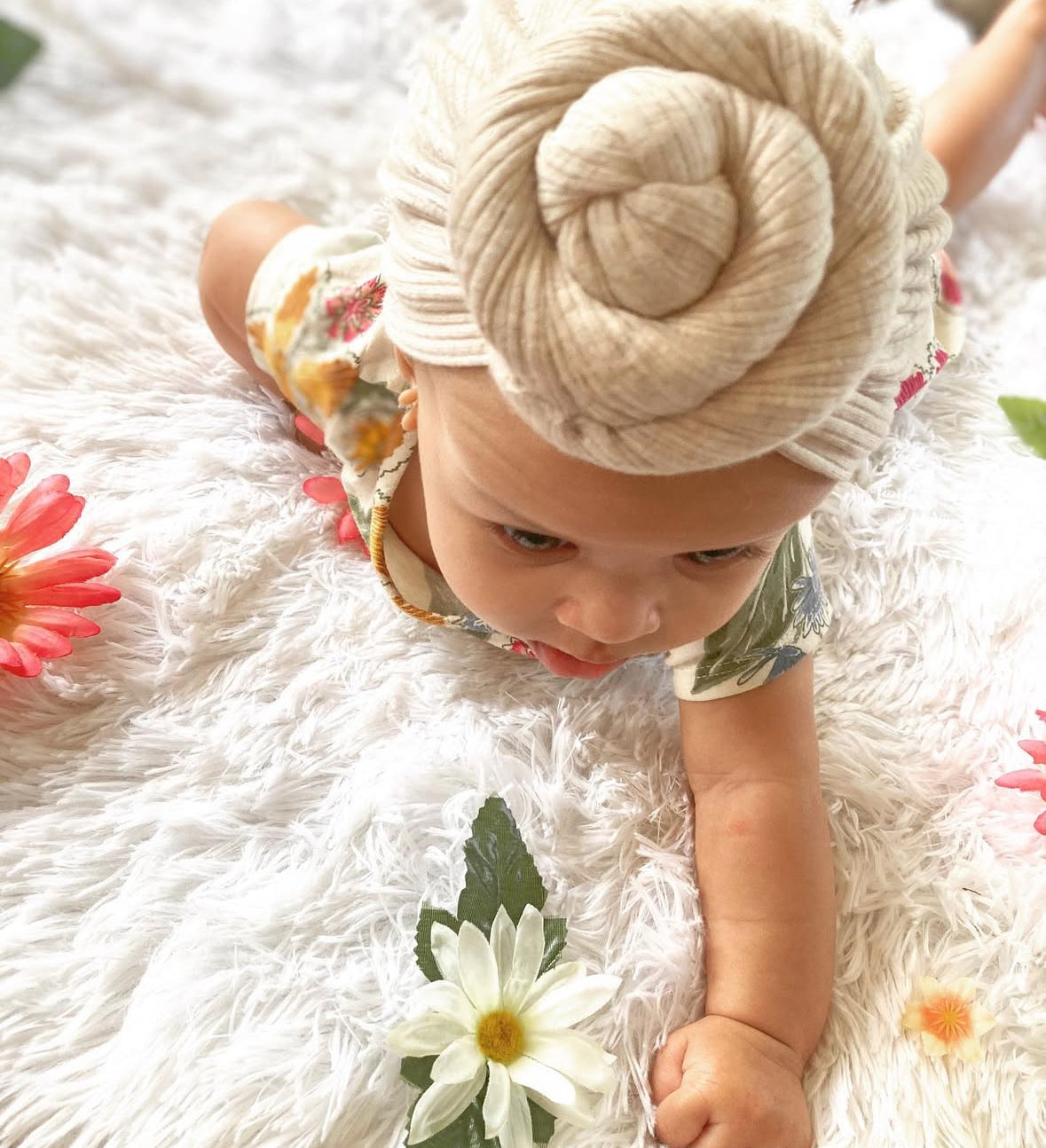 The “throw it on and feel cute” headwrap for moms who want to hide hairwash day #5 and for babies who just want to be snuggly. Soft, breathable, and actually flattering (yes, really). For every two Cozy Loops purchased, we donate one to a strong woman at Moffitt Cancer Center, because comfort and cuteness belong to everyone.