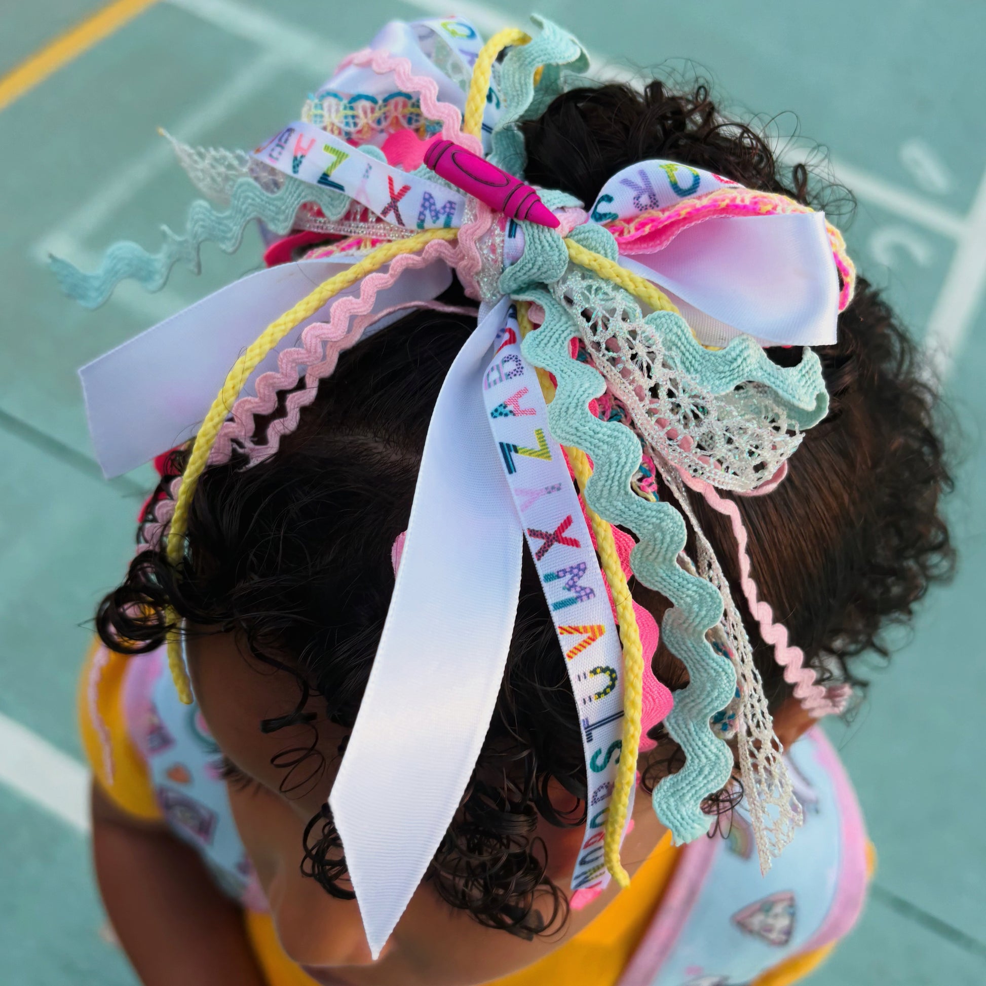 For the free spirits (or at least those who dress like one on Saturdays). These airy, textured eye catching bows tied together with yarn, ribbon, and tulle are perfect for when you just want something different from the usual bow-next-door.